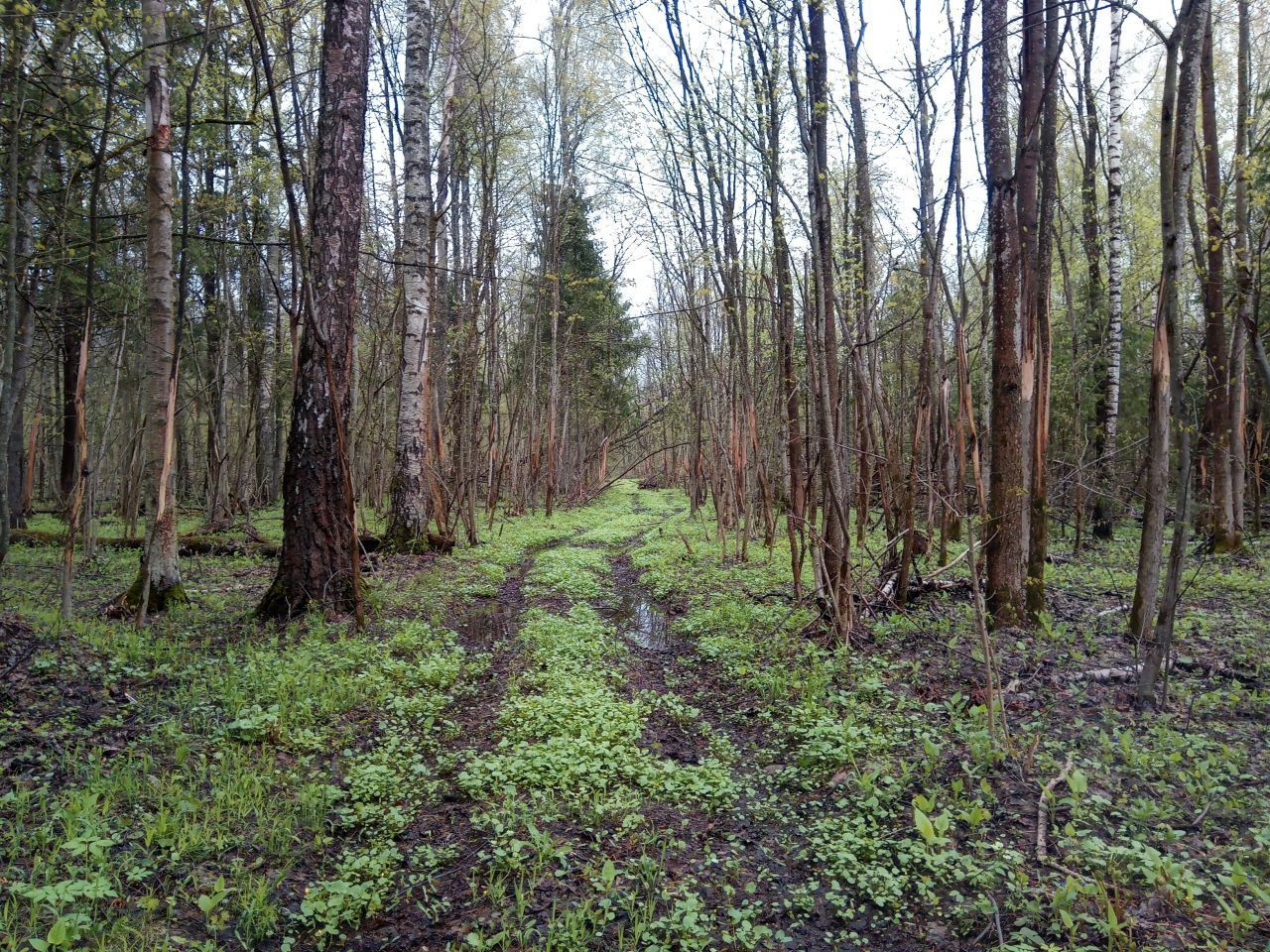 Особенности района. Хвойные (преимущественно еловые) и смешанные леса, травяные луга, вырубки и посадки разного возраста, верховые и низинные болота, ручьи и речки. В еловых лесах есть локальные участки, поражённые короедом-типографом. Там образовались сплошные завалы, которые, как правило, легко обойти. Участки здорового елового леса и старых посадок хорошо проходимы. На некоторых заросших вырубках подрастающий лиственный лес погнут и поломан налипавшим зимой снегом и льдом. Края некоторых полей заросли борщевиком Сосновского, который уже пошёл в рост. Дорожно-тропиночная сеть умеренно густая: просеки в основном чистые, есть квадродороги и тропы, но есть и районы без заметных дорог. Рельеф представлен оврагами и пологими холмами.