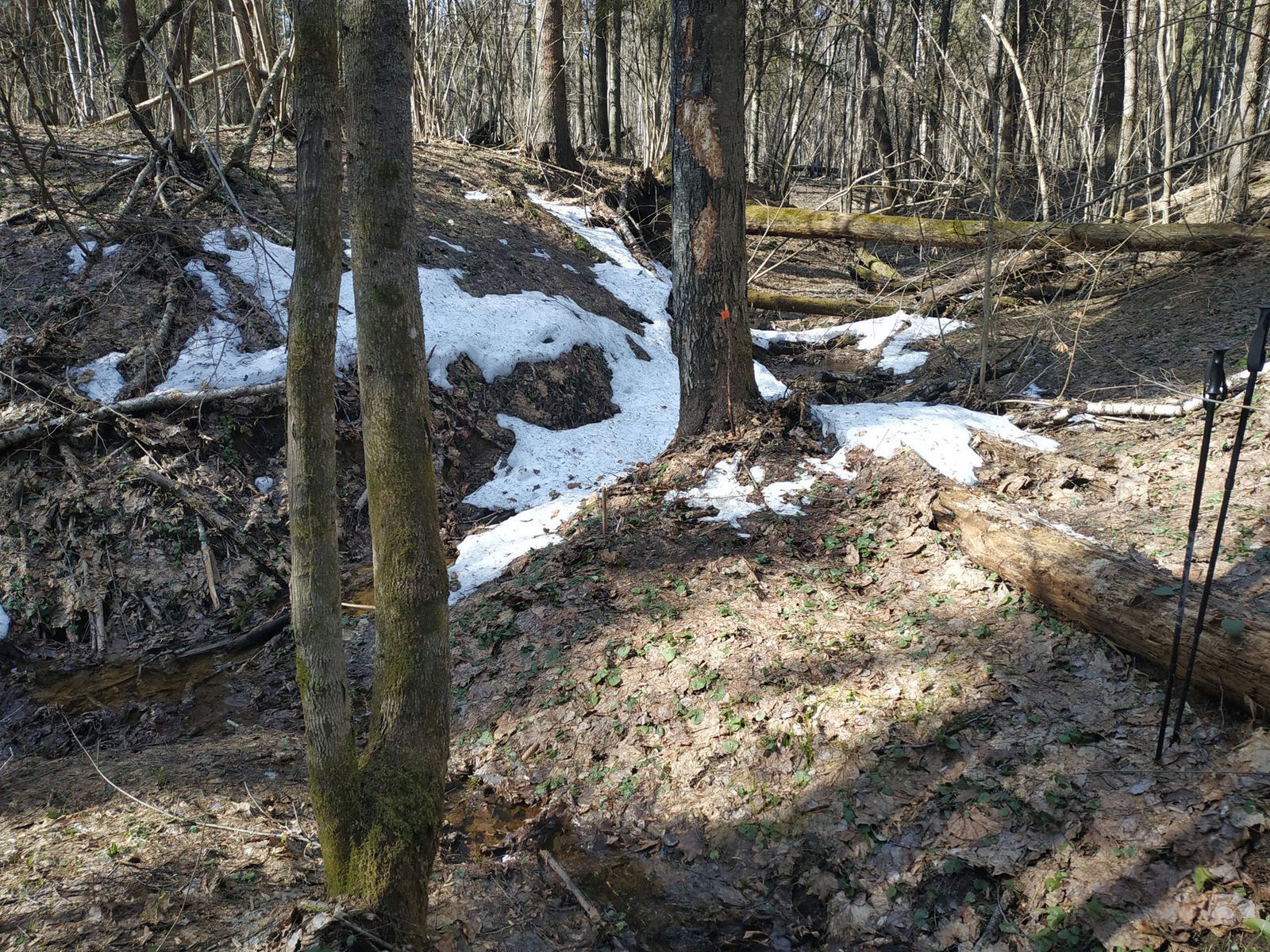На момент окончания полевых работ уровень воды в районе скорее повышенный. Болота мокрые, в оврагах заметен сток воды. Деятельность бобров не столь заметна, как в других районах Подмосковья. На дистанции возможны броды глубиной до 0.3м. Источников воды на дистанции хватает, но всё ещё может подсохнуть. Воду лучше кипятить.
