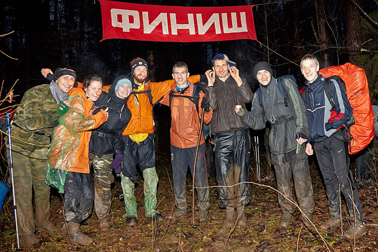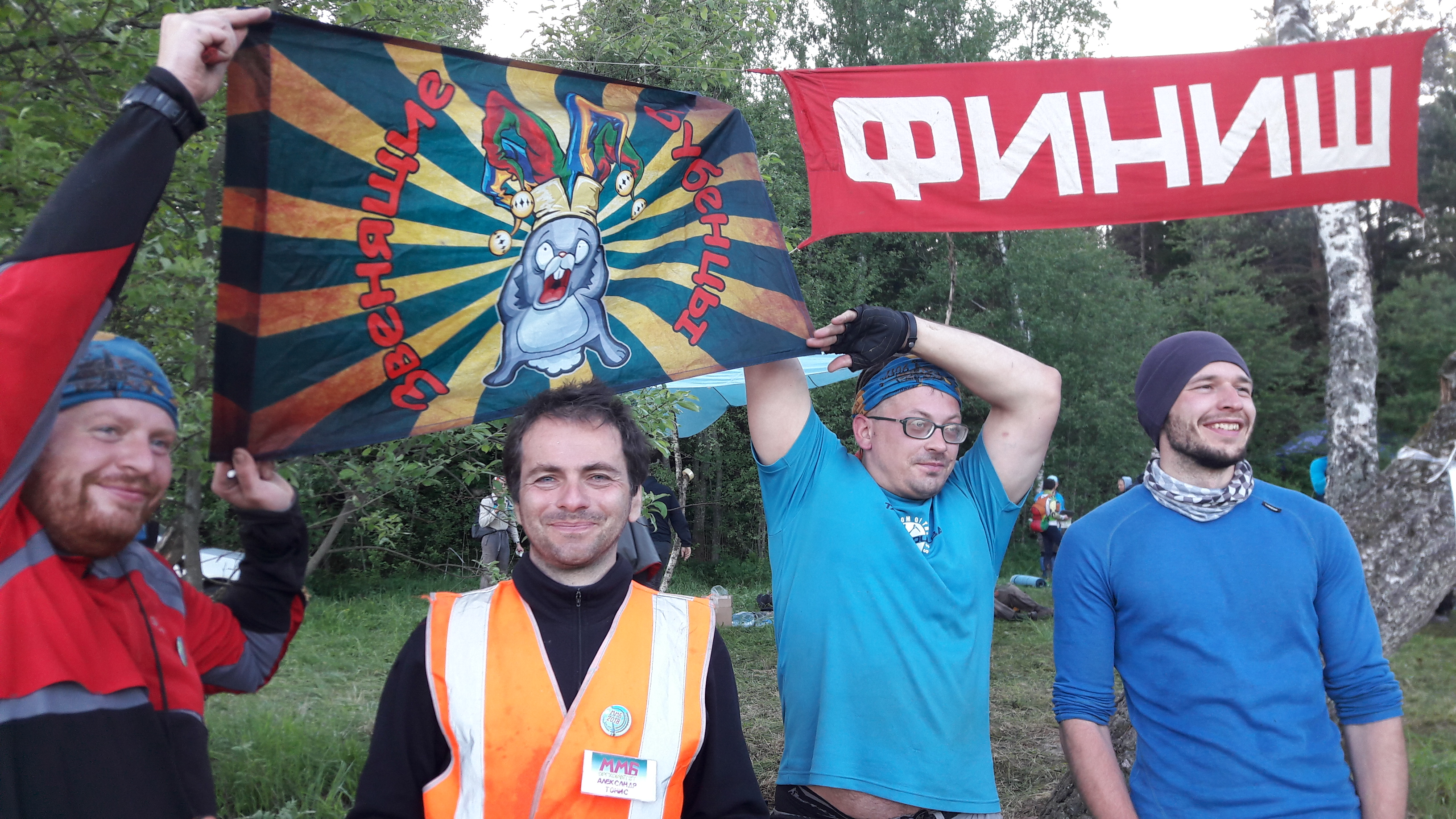 — Вы финишируете? — Да. — Но вас двое, а в карточке четверо? Где девушки? — А девушки потом!
