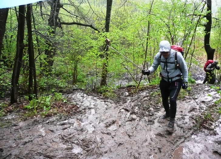 Отак идти самая красота. Идёшь на палочки опираешься, лес ломить не надо, легко и свободно. По лугам. Кстати с палками прикол был. Когда ехали туда было много челов с лыжными палками. Ну думаю хуле они выё.ся, а потом как прошёл часиков семь, понял, что-то в этом есть… И на след день бодренько так с двумя палочками. ДАже пацик с которым ехали в электричке отметил, что мол быстро вы научились. Дык ага, осваиваешься здесь просто бегом!